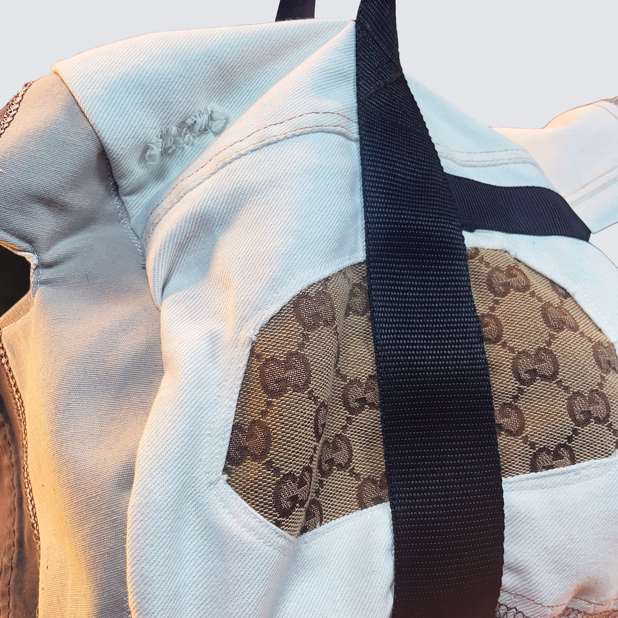 *Para la confección de este producto se han utilizado un total de 3 pantalones, gracias a su compra has ayudado a que los restos no acaben en un lugar equivocado.